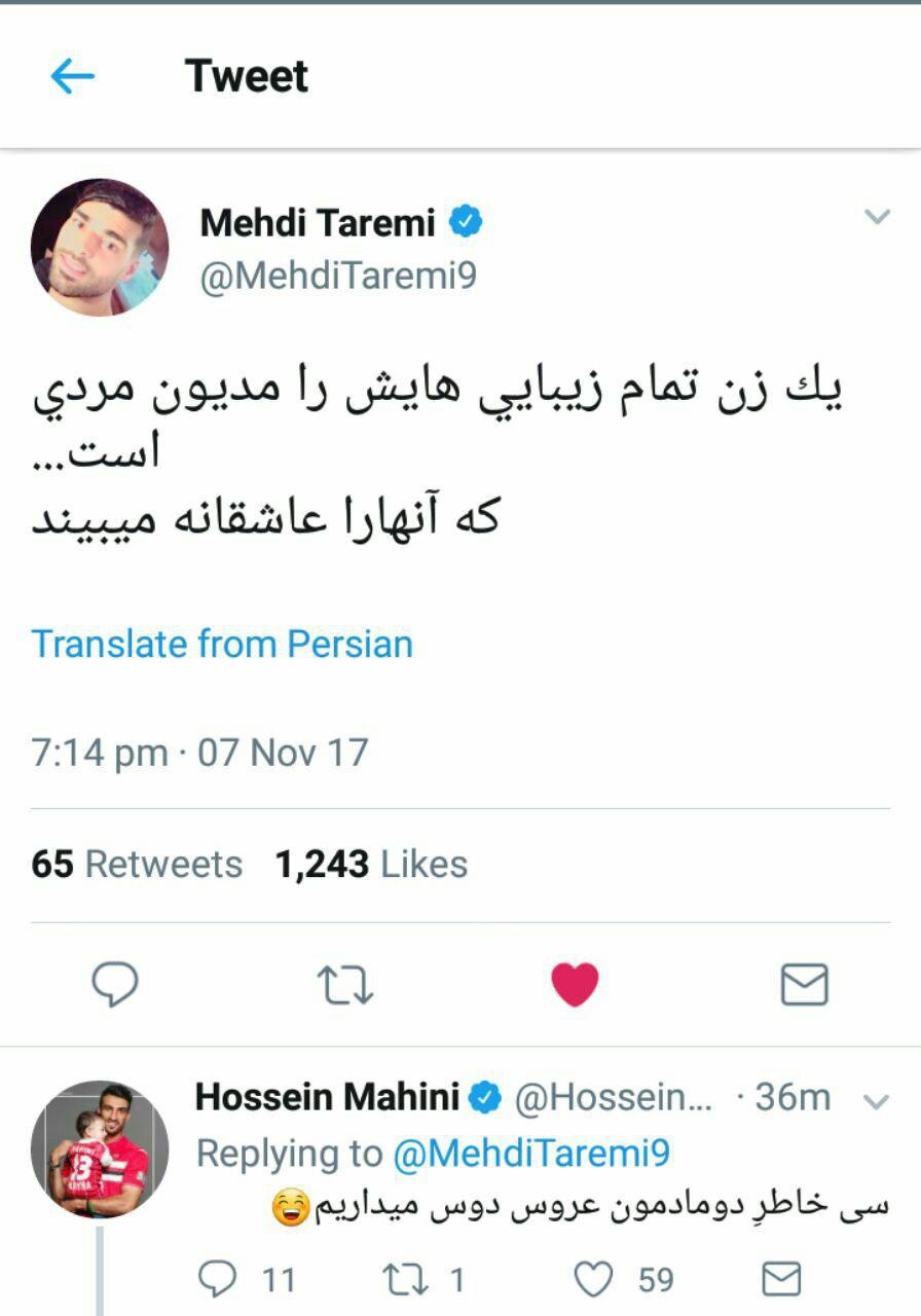 توئیت عاشقانه مهدی طارمی در 24 ساعت گذشته خیلی بازتاب داشته و حالا همشهریاش لو داده انگار قرار است طارمی را زین پس آقا داماد صدایش کنند.