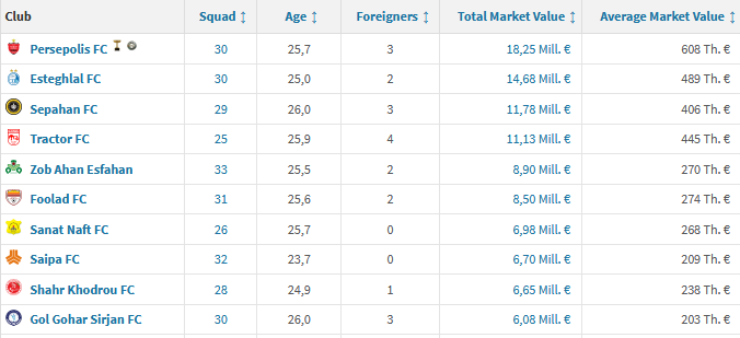 در لیگ برتر ایران هم باشگاه پرسپولیس در صدر قرار دارد، استقلال و سپاهان اصفهان در رده های بعدی قرار دارند.