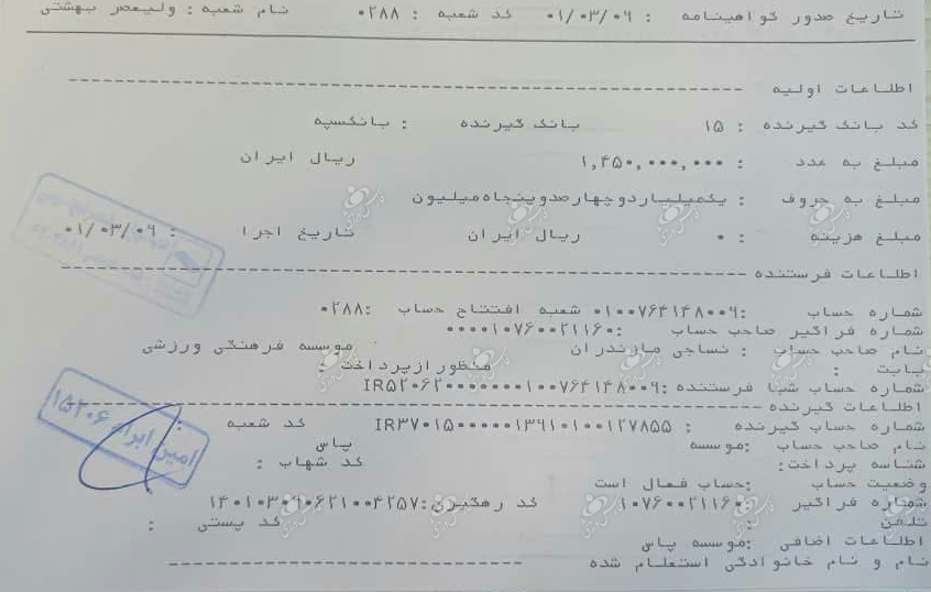 *تصاویر واریز پول برای اجاره ورزشگاه دستگردی و عقد قرارداد