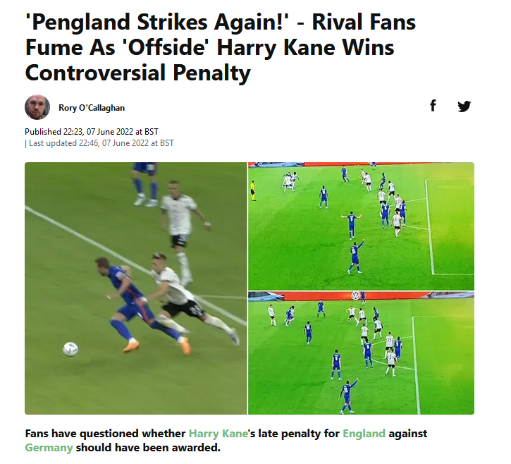 رسانه Sport Bible در گزارشی به نقل از طرفداران نوشت: هم آفساید بود، هم خطا نبود و هم دوباره یک پنالتی غیر حقیقی برای انگلیسیها گرفته شد.