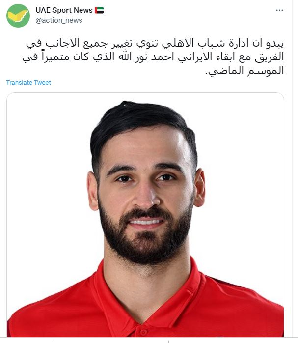 احمد نوراللهی هافبک ملی پوش ایرانی تنها لژیونری در شباب الاهلی خواهد بود که در فصل آینده در این تیم به دلیل عملکرد خوبش خواهد ماند.