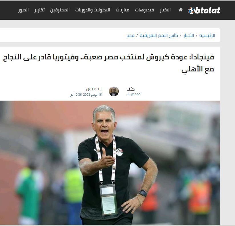 روایت وینگادا از احتمال بازگشت کی‌روش به نیمکت تیم ملی مصر