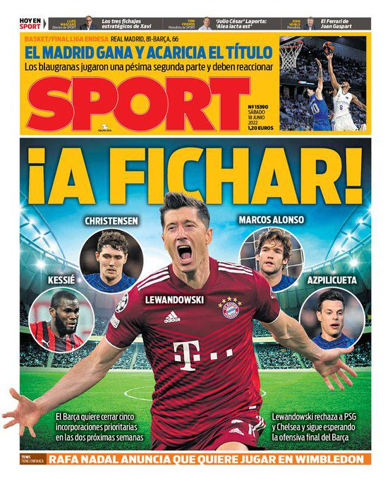 امروز نشریه اسپورت کاتالونیا عکس لواندوفسکی را بزرگ در جلد اصلی کار کرد و از انتقال احتمالی او حرف زد. موندو نیز در جلد اصلی خود نوشت: ستاره لهستانی یک قدم با بارسا فاصله دارد.