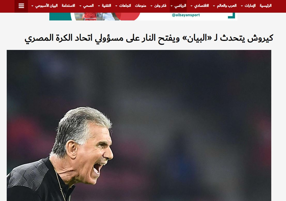کی روش در جدیدترین مصاحبه اش با نشریه «البیان» به صورت اختصاصی به این نشریه اماراتی مدارکی را داد که نشان می دهد فدراسیون مصر در حق او اجحاف کرده است.