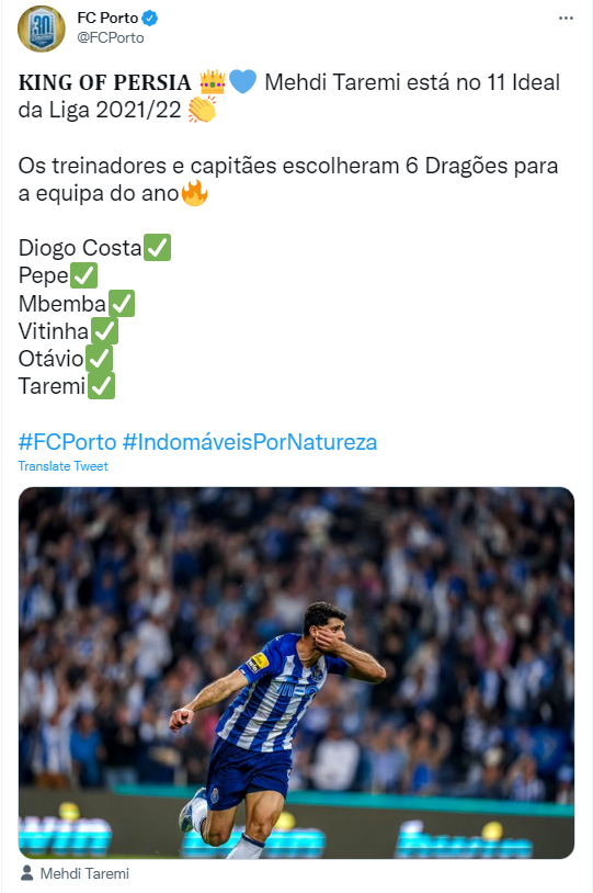 باشگاه پورتو و مطبوعات پرتغالی نسبت به قرار گرفتن طارمی در تیم منتخب فصل واکنش نشان دادند.