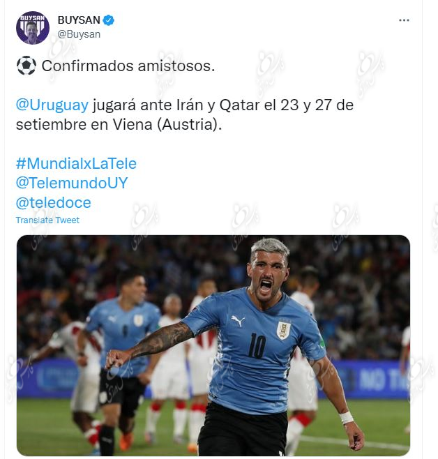 این خبرنگار مطرح در توئیتر خود نوشت: دو دیدار دوستانه تایید شده است. تیم ملی اروگوئه در روزهای 23 و 27 سپتامبر در وین (اتریش) به ترتیب به مصاف ایران و قطر خواهد رفت.