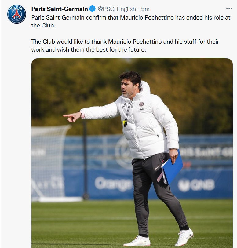 باشگاه پاری سن ژرمن به طور رسمی از برکناری مائوریسیو پوچتینو خبر داد.