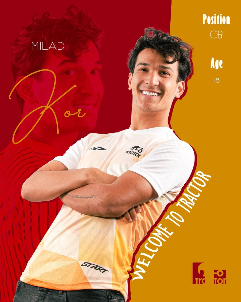 میلاد کُر مدافع 18 ساله اهل بندر ترکمن با عقد قرارداد رسمی به تراکتور پیوست.
