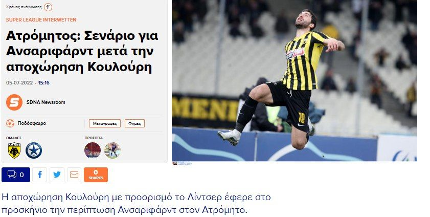 در جدیدترین خبر در این زمینه سایت «sdna» یونان خبر داد کریم انصاری فرد مهاجم تیم ملی ایران و عضو باشگاه آ.اک در لیست مازاد قرار دارد و مشتری جدیدی پیدا کرده است.