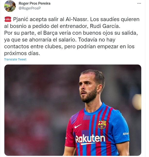 این خبرنگار اسپانیایی تاکید کرد عربستانی ها به درخواست رودی گارسیا مربی ستاره بوسنیایی را می خواهند. باشگاه بارسلونا به نوبه خود از رفتن او استقبال می کند، زیرا باعث صرفه جویی در حقوق او می شود. هنوز هیچ تماسی بین باشگاه ها وجود ندارد، اما ممکن است در چند روز آینده شروع شود.