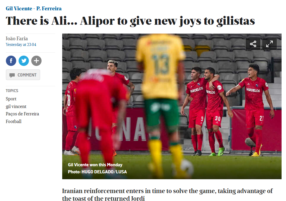 نشریه پرتغالی پس از گلزنی علیپور به تمجید از این بازیکن پرداخت.
