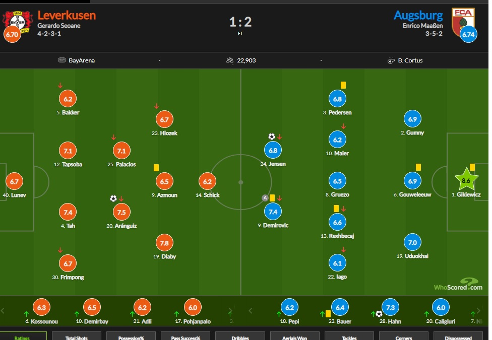 شب گذشته در چارچوب هفته دوم بوندس لیگای آلمان، لورکوزن به مصاف آگسبورگ رفت و با نتیجه 2 بر یک شکست خورد.