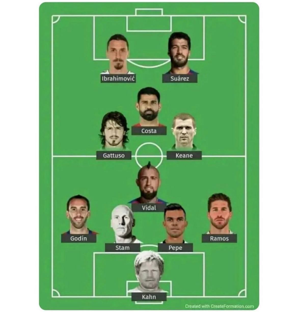 این ترکیب از اولیور کان در خط عقب شروع میشود و با بازیکنانی مثل راموس، روی کین، گتوزو و زلاتان در خط جلو به پایان میرسد.