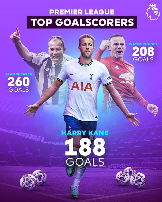 آلن شیهرر با 260 گل و وین رونی با 208 گل در ردههای اول و دوم قرار دارند. با توجه به سن و آمادگی هری کین این انتظار وجود دارد که ستاره تاتنهام به سمت تاریخسازی و رسیدن به رکورد شیهرر پیش برود.