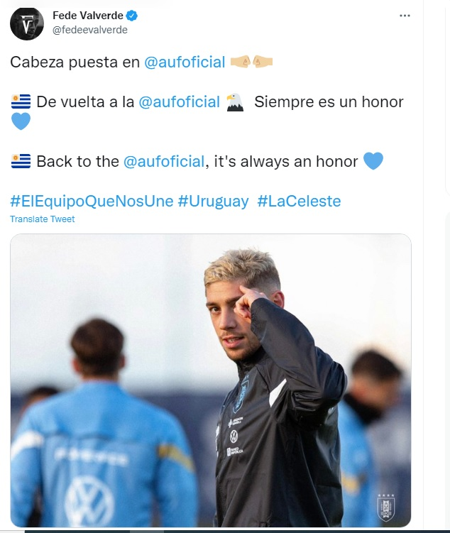 والورده در توئیتر خود واکنش جالبی به بازگشتش به تیم ملی داشت و نوشت: سر تعظیم به تیم ملی اروگوئه...بازگشت به تیم ملی همیشه باعث افتخاره...بازگشت به تیم ملی همیشه افتخار است.