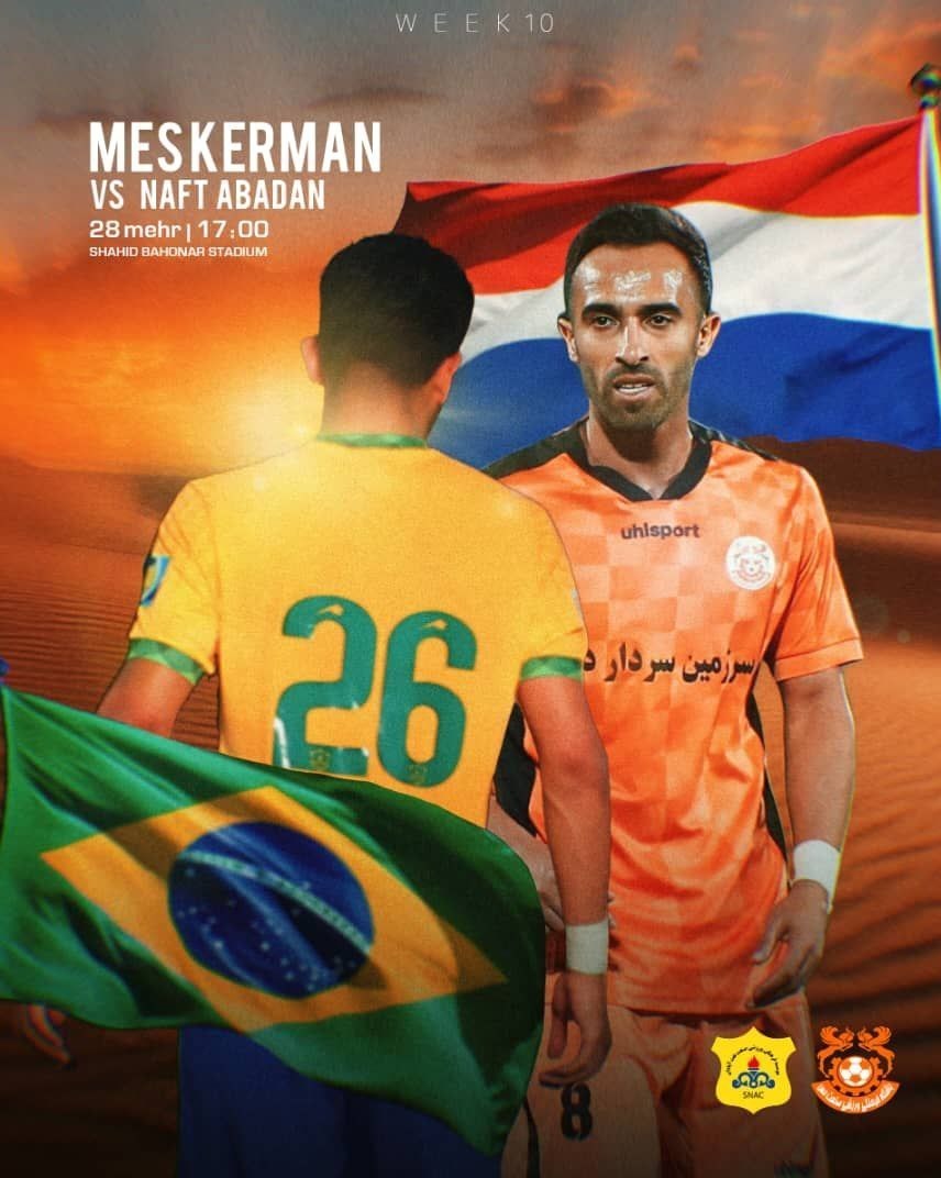تیم فوتبال مس کرمان از ساعت 17 امروز (پنجشنبه) در قالب هفته دهم لیگ برتر در ورزشگاه شهید باهنر کرمان به مصاف صنعت نفت آبادان می‌رود. در همین رابطه روابط عمومی و واحد رسانه باشگاه مس کرمان پوستری را برای این بازی طراحی و منتشر کرده است که عجیب به نظر می‌رسد. در این پوستر پرچم‌ کشور‌های هلند و برزیل در کنار بازیکنان دو تیم آورده شده است.