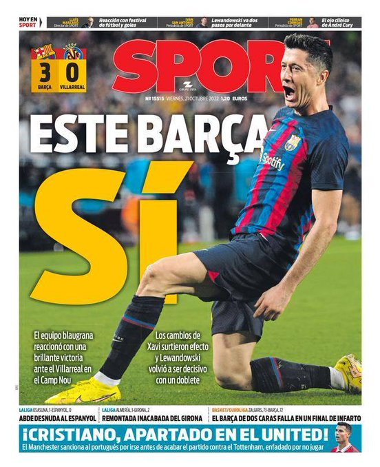 اسپورت کاتالونیا با تیتر « بله؛ این همان بارساییاست که میخواهیم» به نمایش عالی شاگردان ژاوی اشاره کرد و از بازگشت درخشان در نیوکمپ حرف زد.