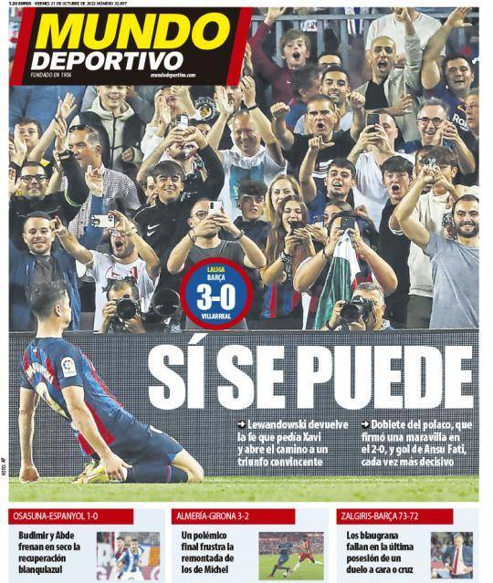 موندو دپورتیوو نیز با انتشار عکسی از لواندوفسکی به تمجید از بارسلونا پرداخت و نوشت: بله؛ ما میتوانیم!