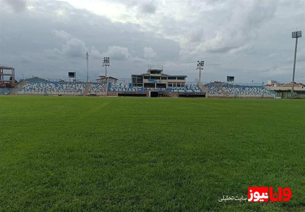 بارش باران در شهر انزلی به حدی بود که آب زیادی راهروهای منتهی به رختکن و داخل زمین نفوذ کرده است. عباس تیموری، ناظر بازی با تایید این خبر به خبرگزاری تسنیم گفت: بارش باران همچنان در انزلی ادامه دارد و با این شرایط طبق آیین‌نامه برگزاری مسابقات فوتبال، بازی با یک روز تأخیر برگزار خواهد شد.