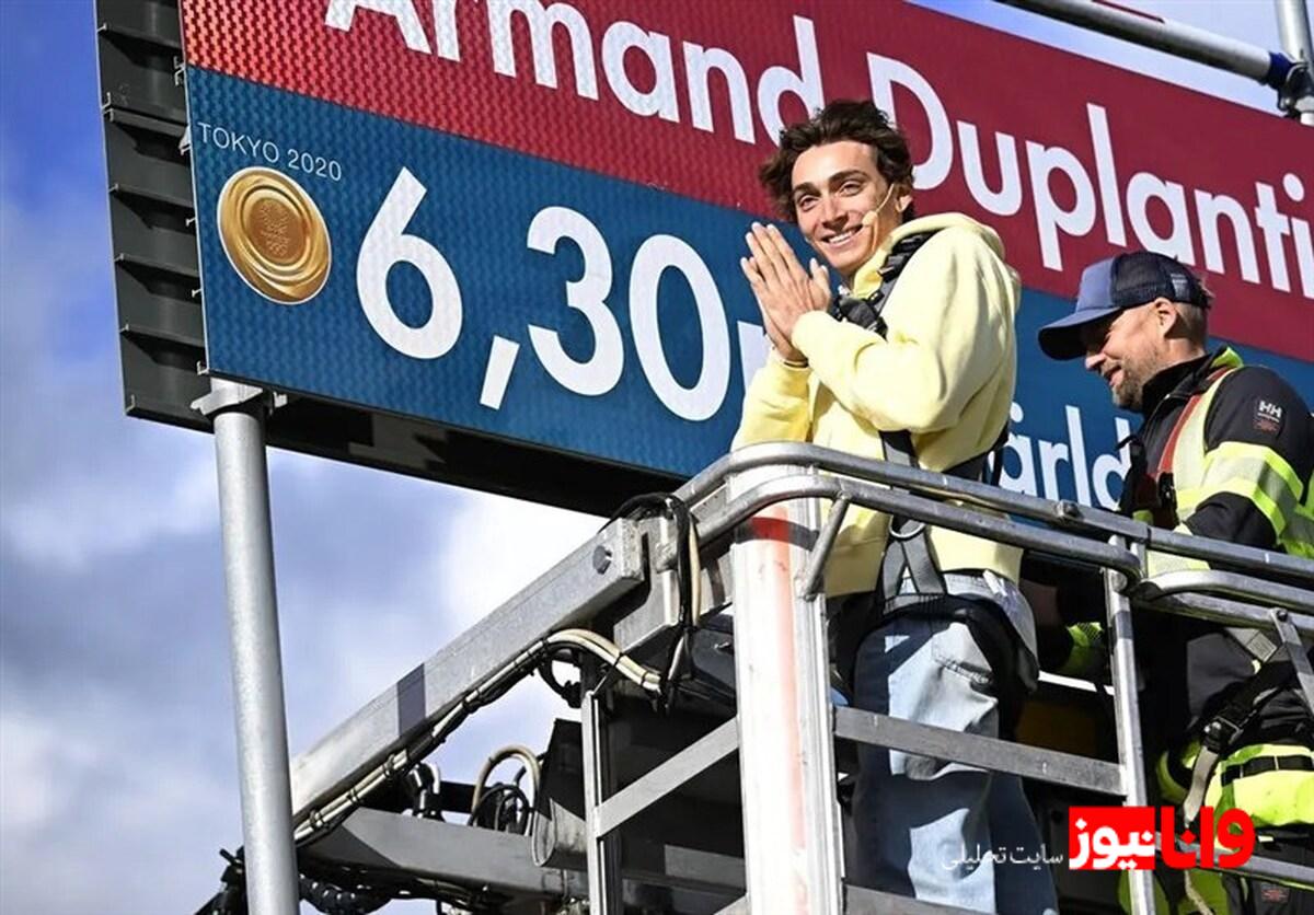 دوپلانتیس 25 ساله خود در محل حاضر بود. او که کمربند ایمنی بسته بود، در سبد بالابر هوایی قرار گرفت و به آرامی به سمت بالا رفت تا ارتفاع میله را با رکورد جهانی فعلی تنظیم کند؛ سفری که کمی برای این ستاره ترسناک بود.