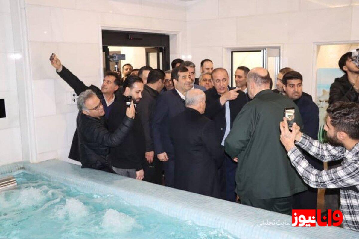 مهدی یونسی استاندار مازندران، سید مناف هاشمی، معاون توسعه منابع و‌مدیریت، سید غنی نظری، معاون حقوقی، امور مجلس و استان های وزارت ورزش و جوانان و سید محمد علی ثابت قدم، مدیرعامل شرکت توسعه و‌ نگهداری اماکن ورزشی کشور، حسین بریمانی مدیرکل ورزش و جوانان و نمایندگان مجلس حوزه انتخابیه نیز در این بازدید حضور داشتند.