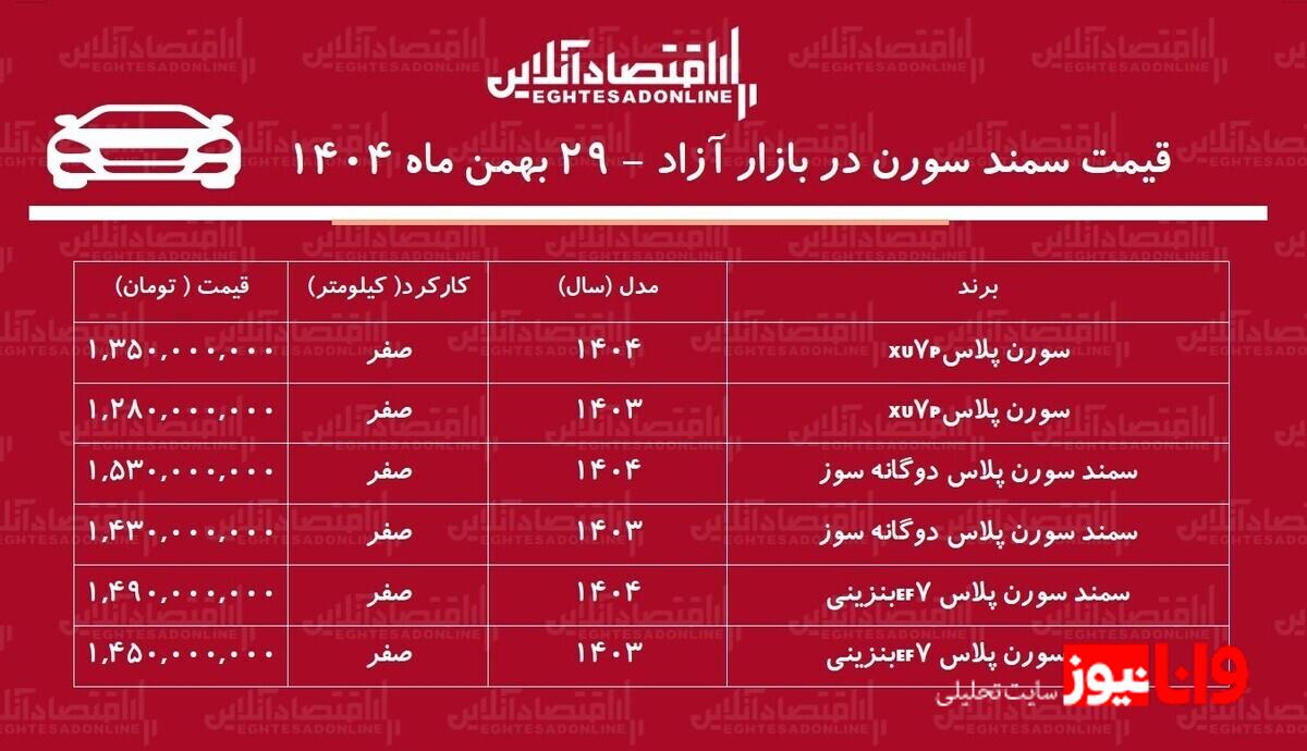 مجموع تحولات بازار خودرو نشان می‌دهد سمند سورن پلاس در بهمن‌ماه به یکی از بازیگران اصلی موج افزایشی قیمت‌ها تبدیل شده است. رشد قابل‌توجه قیمت در نسخه‌های مختلف این خودرو، از EF۷ بنزینی گرفته تا XU۷P و دوگانه‌سوز، بیانگر افزایش تقاضا و تثبیت جایگاه آن در بازار داخلی است. در رقابت مستقیم با دنا پلاس، اگر معیار انتخاب طراحی مدرن‌تر، امکانات رفاهی بیشتر و امکان خرید نسخه اتوماتیک باشد، دنا پلاس ارزش خرید بالاتری ارائه می‌دهد. اما در صورتی که هزینه نگهداری کمتر، سواری نرم‌تر و ساختار فنی ساده‌تر در اولویت قرار داشته باشد، سمند سورن پلاس همچنان یکی از گزینه‌های اقتصادی، قابل‌اتکا و پرتقاضا در بازار خودروهای داخلی باقی خواهد ماند.